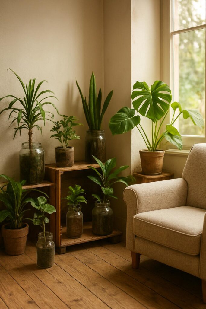 One of the best parts? You don’t need to spend a fortune on fancy planters or tools. Recycled materials like old jars, plastic bottles, and wooden crates can become your garden’s foundation, making it a zero-waste project that aligns perfectly with eco-friendly indoor garden ideas.