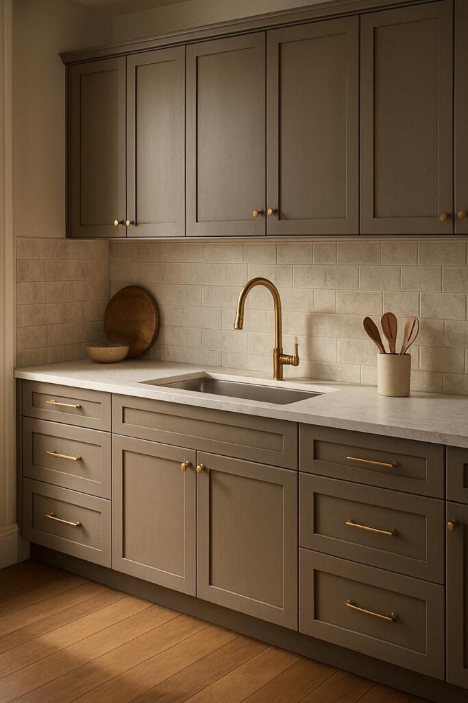 This color combination suits those who want a subtle upgrade without loud statements. It’s versatile for farmhouse, industrial, or contemporary kitchens. Adding textured backsplash tiles or patterned flooring complements the muted tones beautifully.