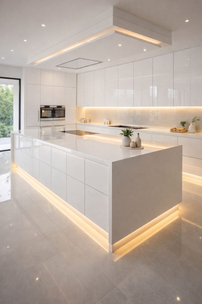 Modern Luxury White Kitchen with LED Lighting