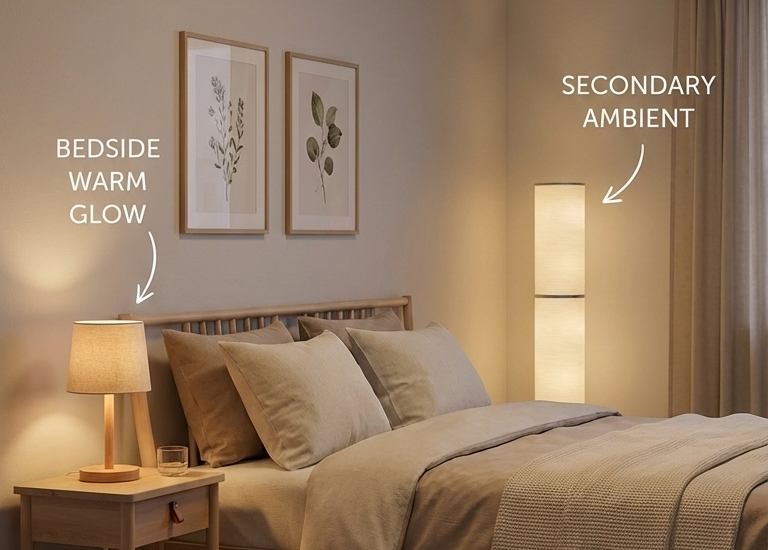 | Lighting | 2 warm lamps | statement lamp + dimmers | Layered light makes it feel “designed” |